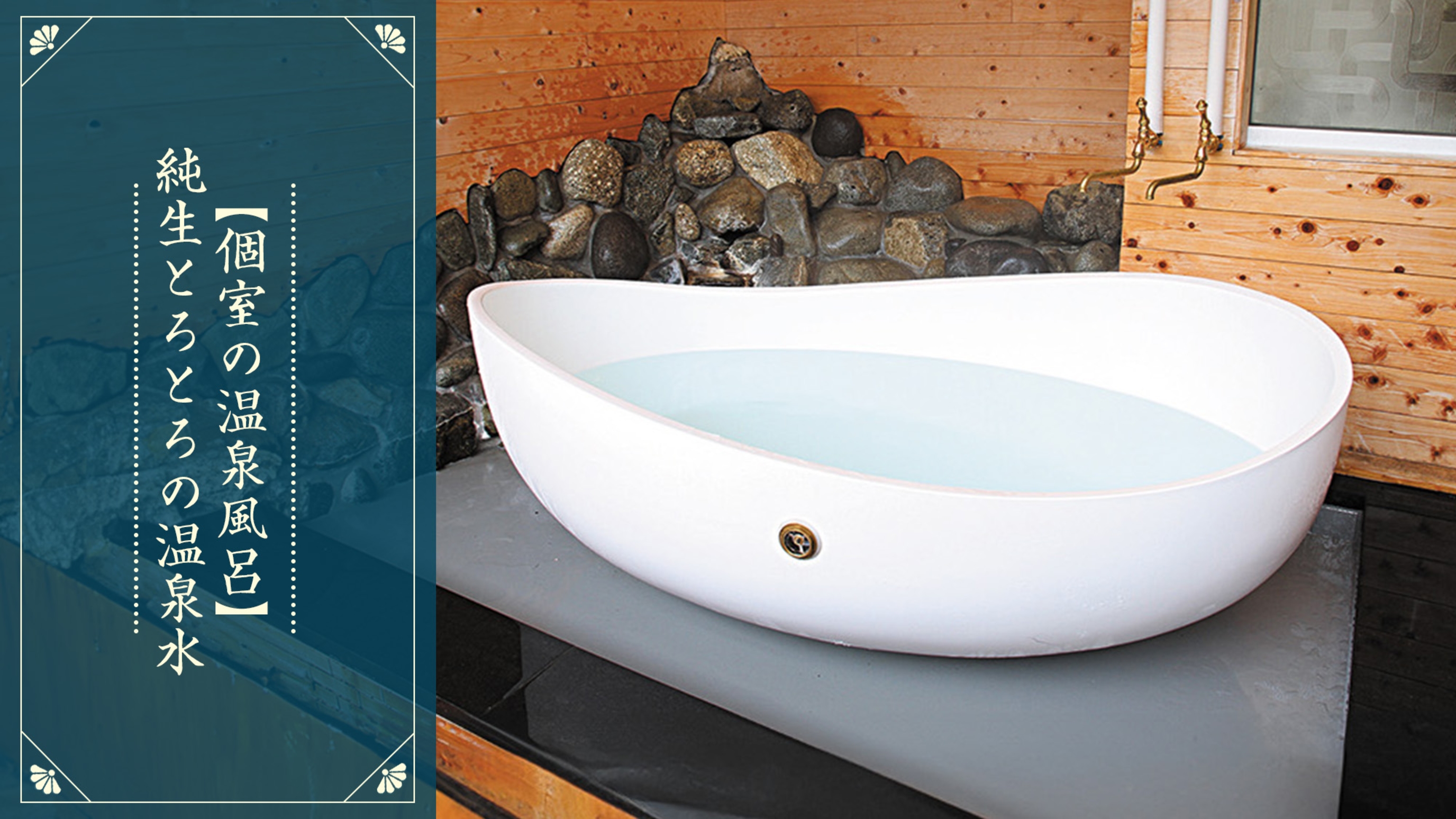 個室温泉があり、源泉を自分で温度を調整しながら入ることができます。